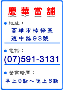 慶華當舖借款店面式經營(非地下錢莊)信貸手續簡便,不論借款金額大小都可在十五分鐘內立即放款,比國內各家銀行撥款速度...